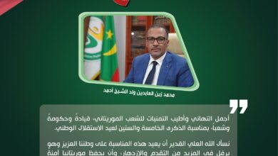 رئيس اتحاد أرباب العمل يهنئ الشعب الموريتاني بمناسبة الذكرى الـ65 للاستقلال الوطني