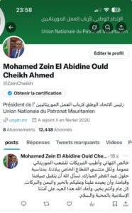 تقدَّم رئيس الاتحاد الوطني لأرباب العمل الموريتانيين، السيد محمد زين العابدين ولد الشيخ أحمد، بأحر التهاني وأطيب التبريكات إلى الشعب الموريتاني عامةً، وإلى كافة منتسبي القطاع الخاص في البلاد، بمناسبة حلول عيد الفطر المبارك.