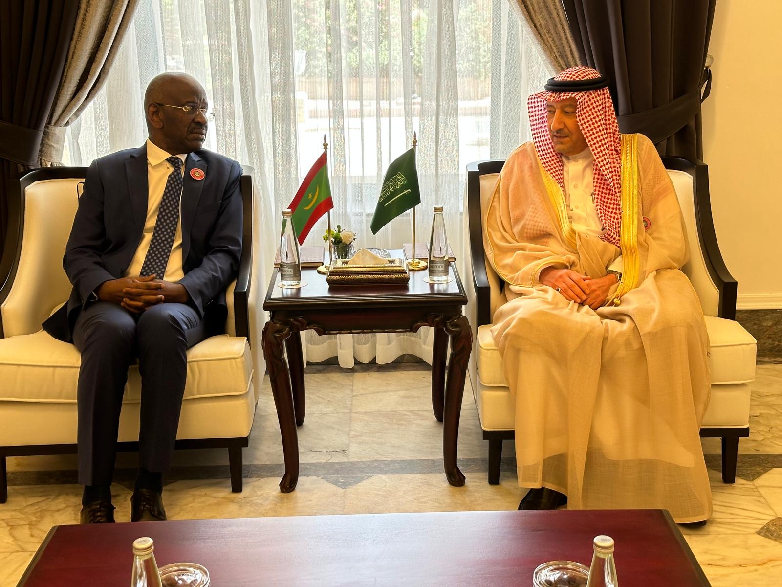 كما عقد جلسة مباحثات مع نائب وزير الخارجية بالمملكة العربية السعودية، المهندس وليد بن عبدالكريم الخريجي، تناولت تعزيز العلاقات الثنائية بين نواكشوط والرياض، إضافة إلى تنسيق المواقف بشأن التطورات الإقليمية والدولية.