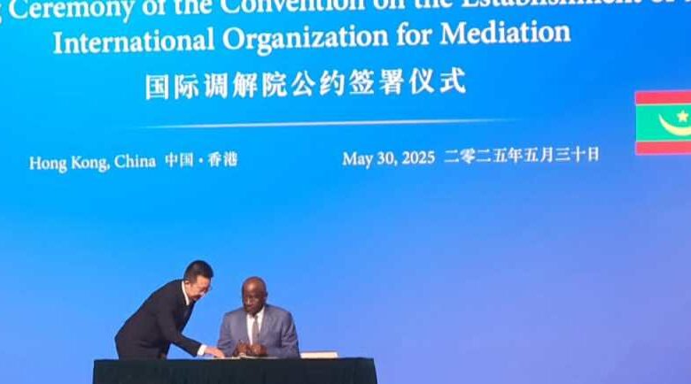 شارك وزير الشؤون الخارجية والتعاون والموريتانيين في الخارج، السيد محمد سالم ولد مرزوك، اليوم الجمعة في هونغ كونغ (الصين)، في حفل توقيع اتفاقية إنشاء المنظمة الدولية للوساطة.