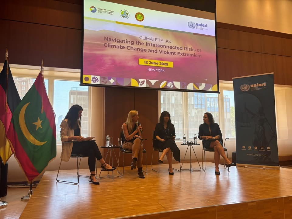 نظمت بعثة الجمهورية الإسلامية الموريتانية لدى الأمم المتحدة بنيويورك، بالشراكة مع بعثة ألمانيا الفيدرالية ومعهد الأمم المتحدة الإقليمي لبحوث الجريمة والعدالة (UNICRI)، نشاطاً مشتركاً تحت عنوان: “نقاشات بيئية: بحث المخاطر المترابطة للتغيرات المناخية والتطرف العنيف” (Climate Talks: Navigating the Interconnected Risks of Climate Change and Violent Extremism)، وذلك في ضوء التقرير الخاص الصادر عن المعهد حول موريتانيا.
