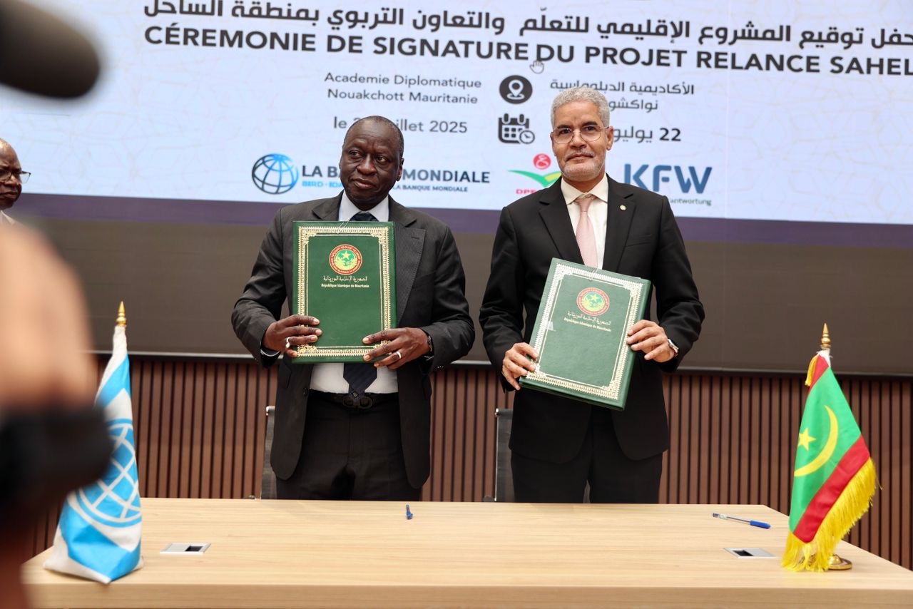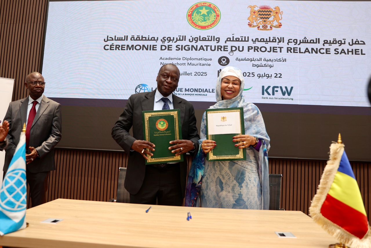 السلطة الموازية (نواكشوط)- وقّعت موريتانيا وتشاد في نواكشوط اتفاقية تمويل مشروع “انطلاق الساحل” الإقليمي، الهادف إلى دعم التعليم والشباب المهمشين، بتمويل إجمالي يبلغ 137 مليون دولار، منها 72.32 مليون مخصصة لموريتانيا، بتمويل مشترك من البنك الدولي وألمانيا.