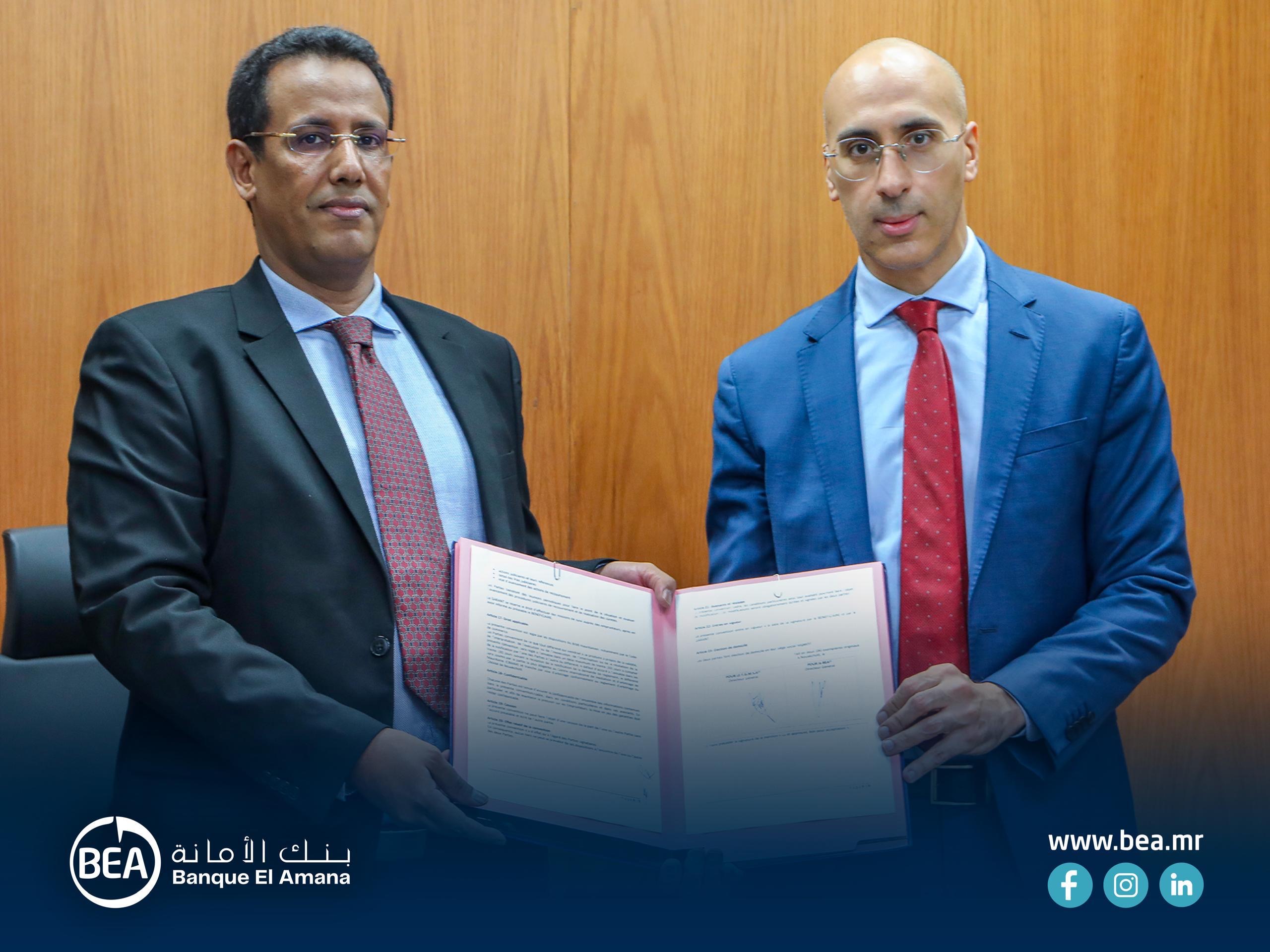 السلطة الموازية- وقع بنك الأمانة (BEA) وصندوق الضمان الموريتاني (FGM) اتفاقية إطارية تهدف إلى تعزيز الشمول المالي وتسهيل الولوج إلى التمويل لفائدة المؤسسات الصغيرة والصغيرة جدًا والمتوسطة (TPE/PME)، إضافة إلى دعم رواد الأعمال الشباب والنساء صاحبات المشاريع.