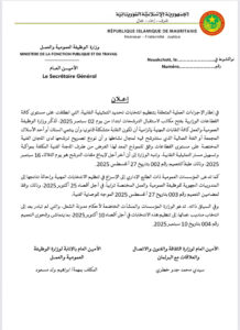 وفي هذا السياق، أصدر معالي الوزير محمد ولد اسويدات تعميماً موجهاً إلى جميع المشغلين الخاضعين لأحكام مدونة الشغل، دعا من خلاله المؤسسات التي لم تبادر بعد بتنظيم الانتخابات إلى الإسراع في إجرائها، وذلك في أجل أقصاه 10 أكتوبر 2025.