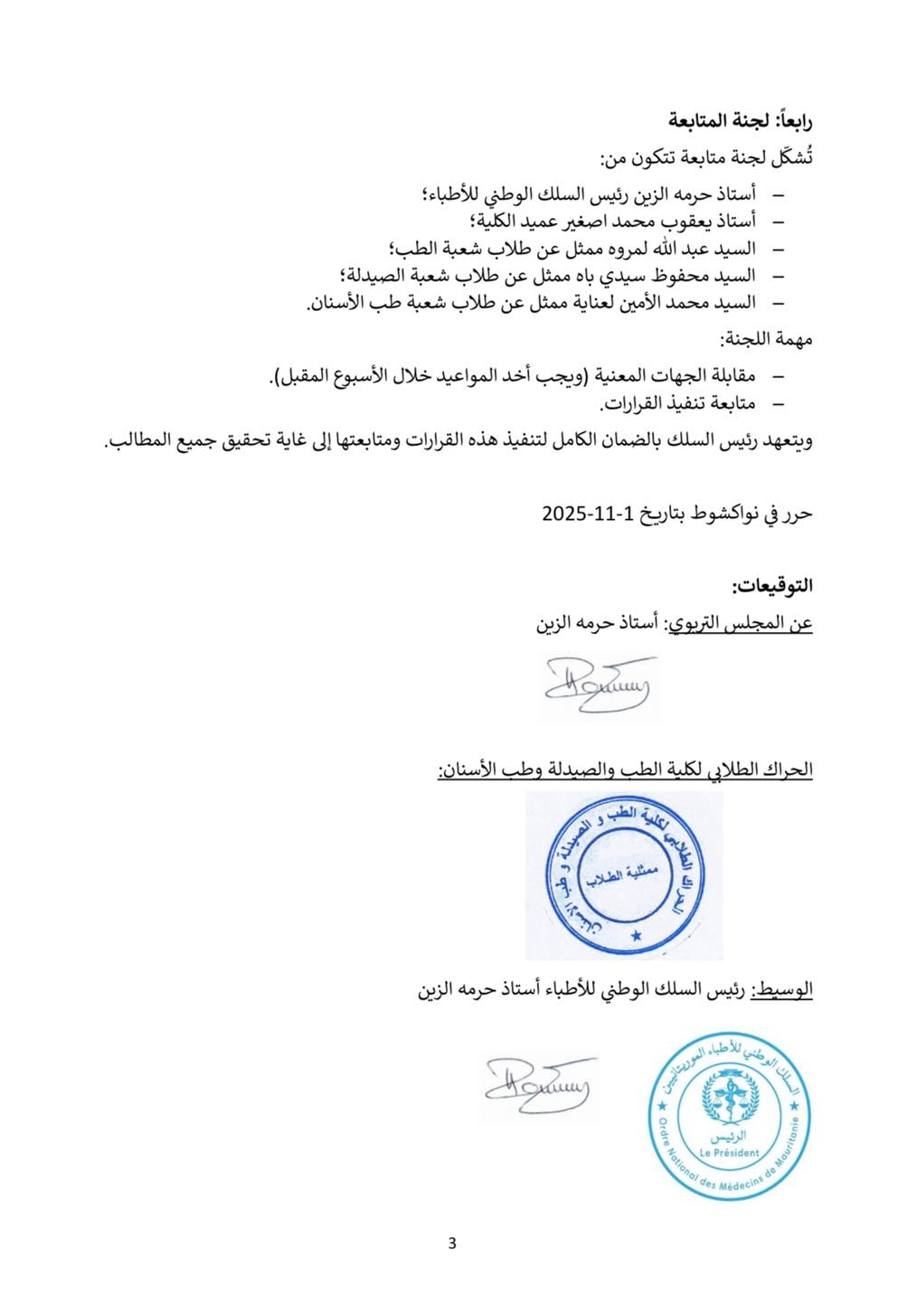 اتفاق ينهي إضراب طلاب طب نواكشوط ويقر إصلاحات في التكوين والتقييم