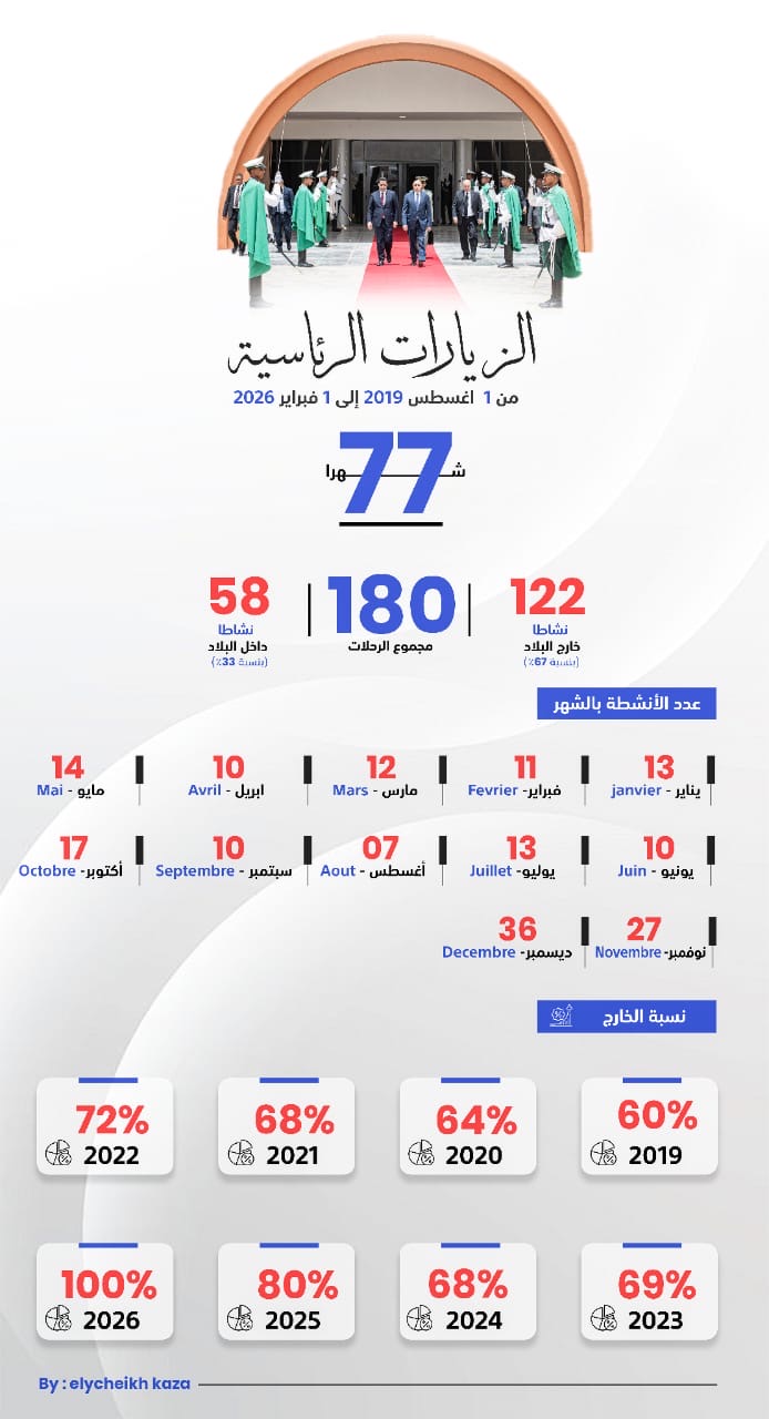 أما خارجيًا، فقد عكست تحركات رئيس الجمهورية انتقال الدبلوماسية الموريتانية من منطق الحضور الظرفي إلى نهج المبادرة وبناء الشراكات، فالزيارات الخارجية والمشاركة الفاعلة في القمم الإقليمية والدولية لم تكن غاية في ذاتها، بل وسيلة لتكريس المصالح الوطنية، وتعزيز الموقع التفاوضي للدولة، وجذب الاستثمارات، وتثبيت صورة موريتانيا كدولة مستقرة وموثوقة في محيط دولي متقلب.