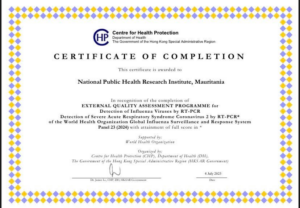 السلطة الموازية (نواكشوط) – حصل المعهد الوطني للبحوث في مجال الصحة العمومية على شهادة إتمام دولية في جودة التشخيص المخبري، صادرة عن مركز الحماية الصحية التابع لحكومة منطقة هونغ كونغ.
