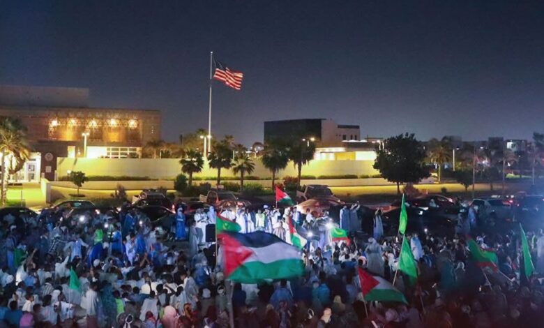 تضامنًا مع غزة: اعتصام ليلي أمام السفارة الأمريكية بنواكشوط وسط دعوات لإضراب شامل الاثنين المقبل