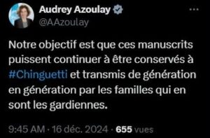 واختتمت المديرة بالقول إن الهدف هو أن تظل هذه المخطوطات محفوظة في شنقيط، وأن يتم نقلها من جيل إلى جيل من قبل العائلات التي تمثل الحراس الحقيقيين لهذا التراث العظيم.